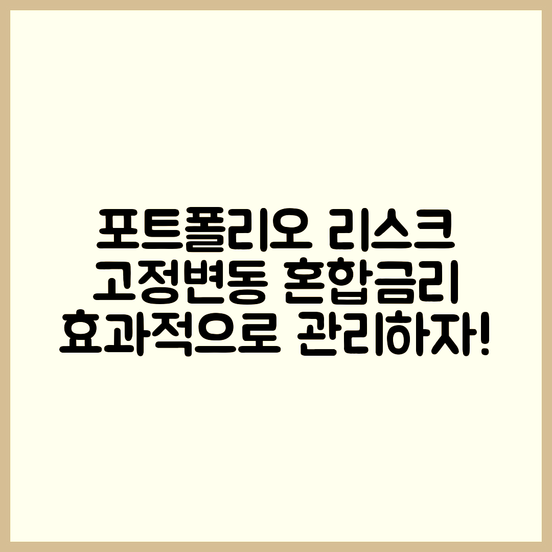→ 혼합금리 포트폴리오를 구성할 때 가장 먼저 고려해야 하는 것은 리스크 관리입니다. 고정금리와 변동금리의 특성을 이해하고, 시장 동향을 파악하여 포트폴리오의 유연성을 확보하는 것이 중요합니다.